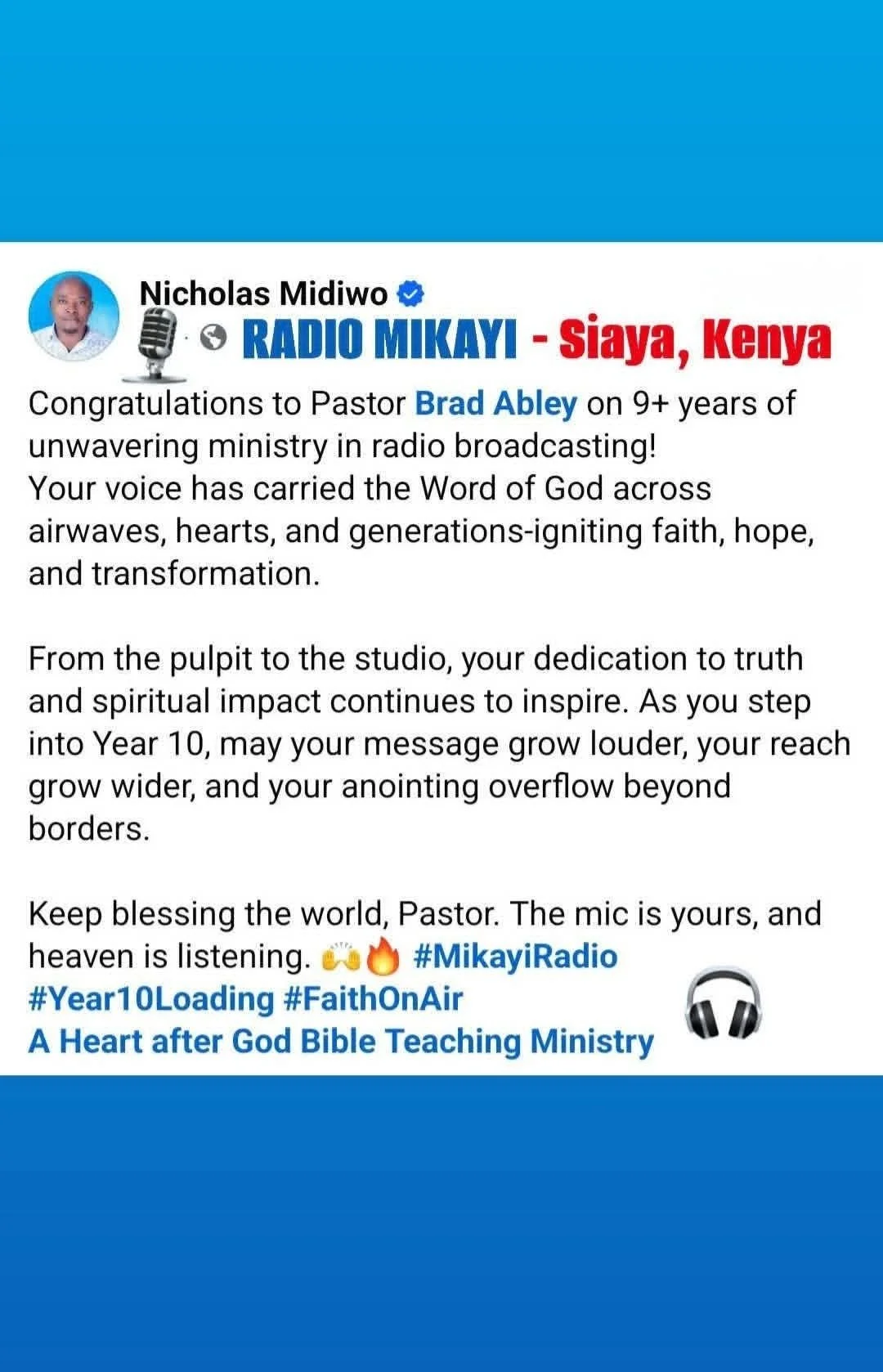 *Click for more Radio Listener Stories on Video: Pst Brad’s YouTube Channel