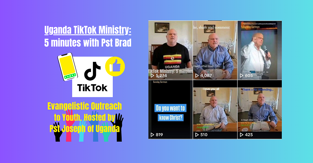 Thank God for technology!! These evangelistic YouTube videos were requested by Radio Pst Joseph of Uganda, he is Pst Brad’s Uganda Radio Pastor. He came up with this- "5 minutes with Pst Brad" to reach the Youth on social media, specifically on TikTok - the video App. TikTok is extremely popular in Uganda. The videos will be evangelist, with solid bible teaching!